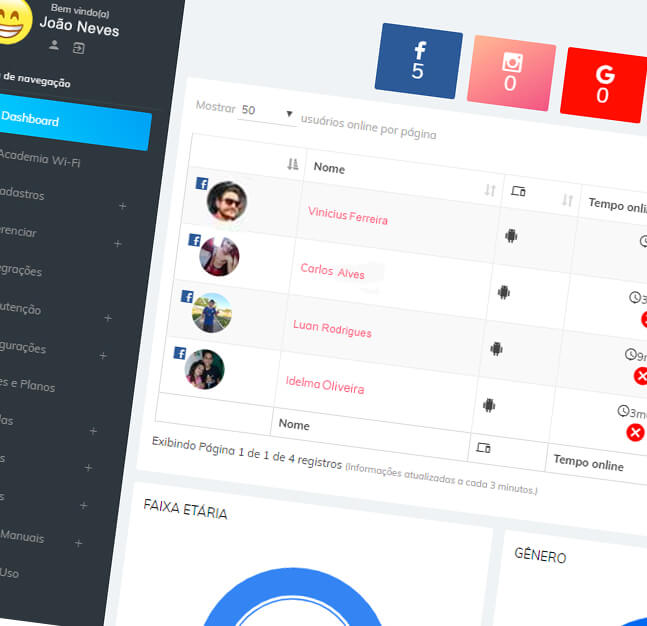 O G-WIFI é a melhor solução para obter dados de seus verdadeiros clientes, entender melhor o que cada um gosta ou pensa do seu negócio, divulgar seus novos produtos e serviços e ainda ter segurança em seu negócio, tudo através da rede Wi-Fi, isso mesmo! Aquela rede que antes era apenas uma senha, que não gerava nenhum benefício, agora é uma ferramenta inovadora para fidelizar e atrair novos clientes com um investimento que cabe no seu bolso!